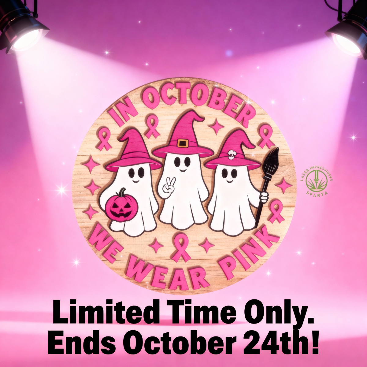 Celebrate both Halloween and Breast Cancer Awareness Month with this adorable “In October We Wear Pink” Ghost Round Sign ??.